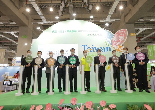 2022臺北國際食品展覽會於今(22)日在南港展覽館二館4樓S區隆重開展,由農委會邀集103家臺灣優質農產食品業者共同籌組的「臺灣館」也舉辦開幕典禮。今年臺灣館以「永續‧韌性‧零碳農業」為主題,除了向國內外食品採購業者推薦多元豐富的臺灣優質農產品及農產加工品外,更設置「農業淨零碳排」主題形象區,介紹國產農產食材在生產過程透過「減量」、「增匯」、「循環」及「綠趨勢」等4大主軸來減少碳排放,同時向消費者說明如何聰明選購有助於因應氣候變遷的國產農產食品。