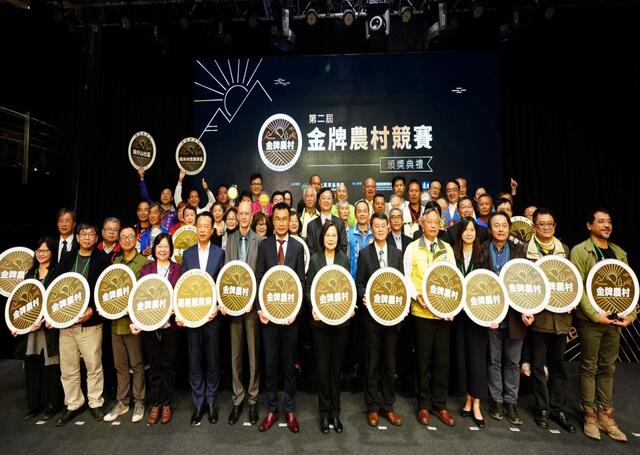 農委會今(21)日舉行三年一度的「第二屆金牌農村競賽」頒獎典禮,蔡英文總統再度親蒞頒獎,更顯肯定金牌農村競賽的價值。臺灣金牌農村概念源自德國,現場除來自全國22縣市政府及第一、二屆得獎農村代表和評審委員外,特邀請德國在台協會處長許佑格博士(Dr. Jörg Polster)與會,共襄盛舉。本屆計有784個農村參與競賽,歷經11個月緊鑼密鼓地遴選評比,最終共有23個農村脫穎而出。農委會期許透過競賽促進農村間激勵思考,以提昇臺灣農村走向永續發展。