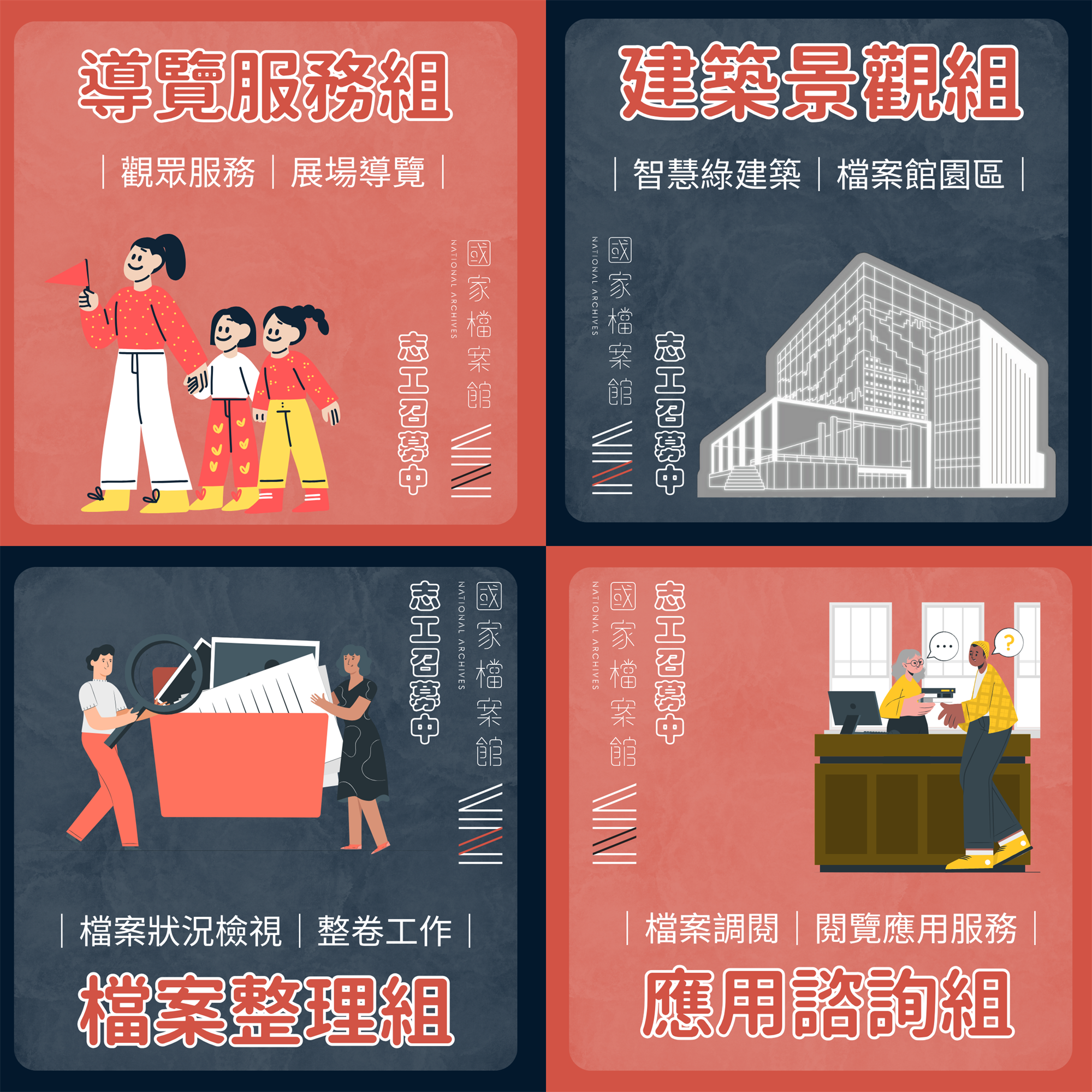 (二)報名組別:導覽服務組、建築景觀組、應用諮詢組及檔案整理組。