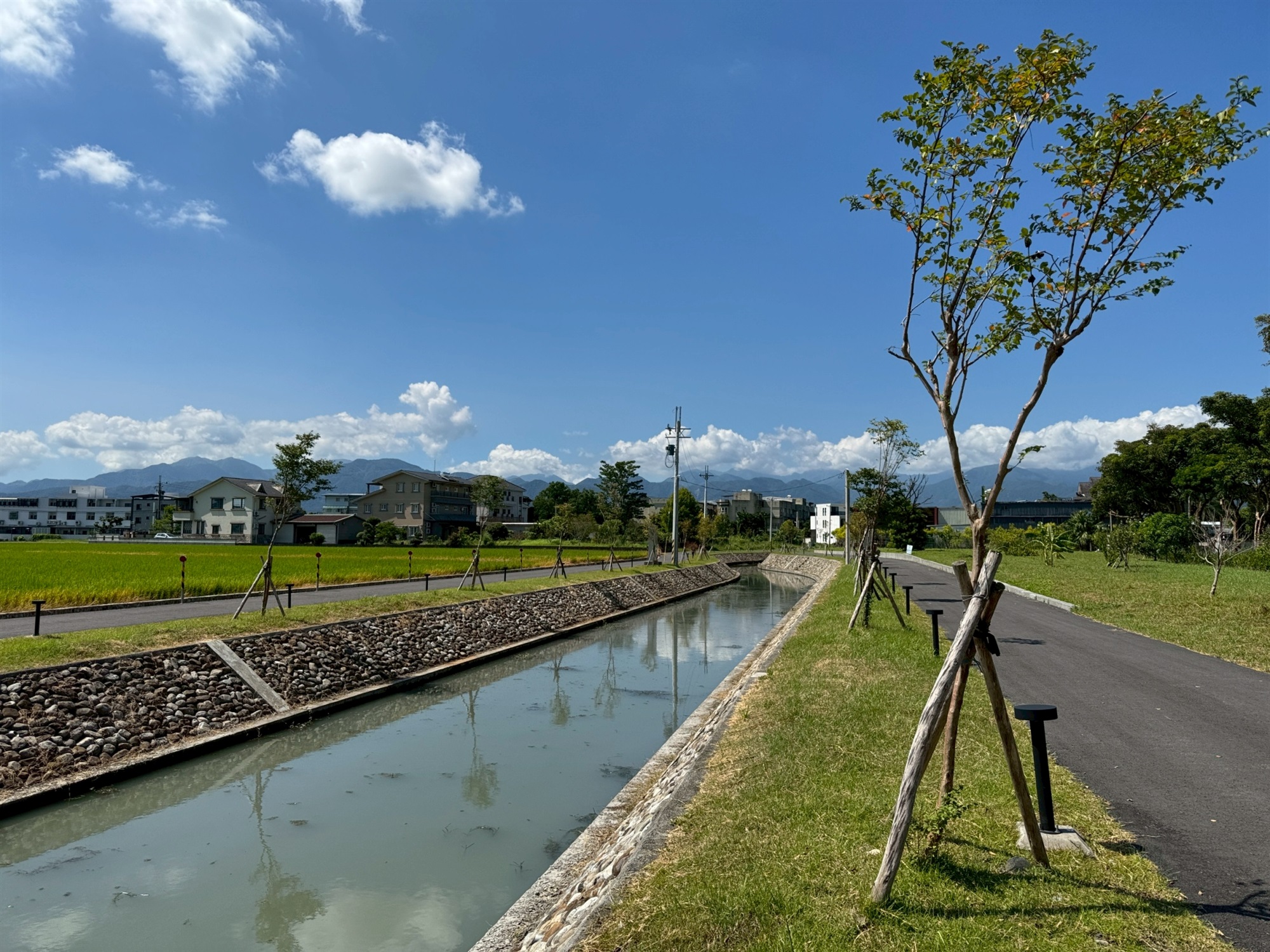 3.植栽工程面積計2,510平方公尺:本工程除佈設滿足需求之渠道及水防通道空間外,其餘空間以作為綠美化為原則,經生態團隊與柯林社區在地居民討論後,選用台灣原生種九芎,以增加生態多樣性。