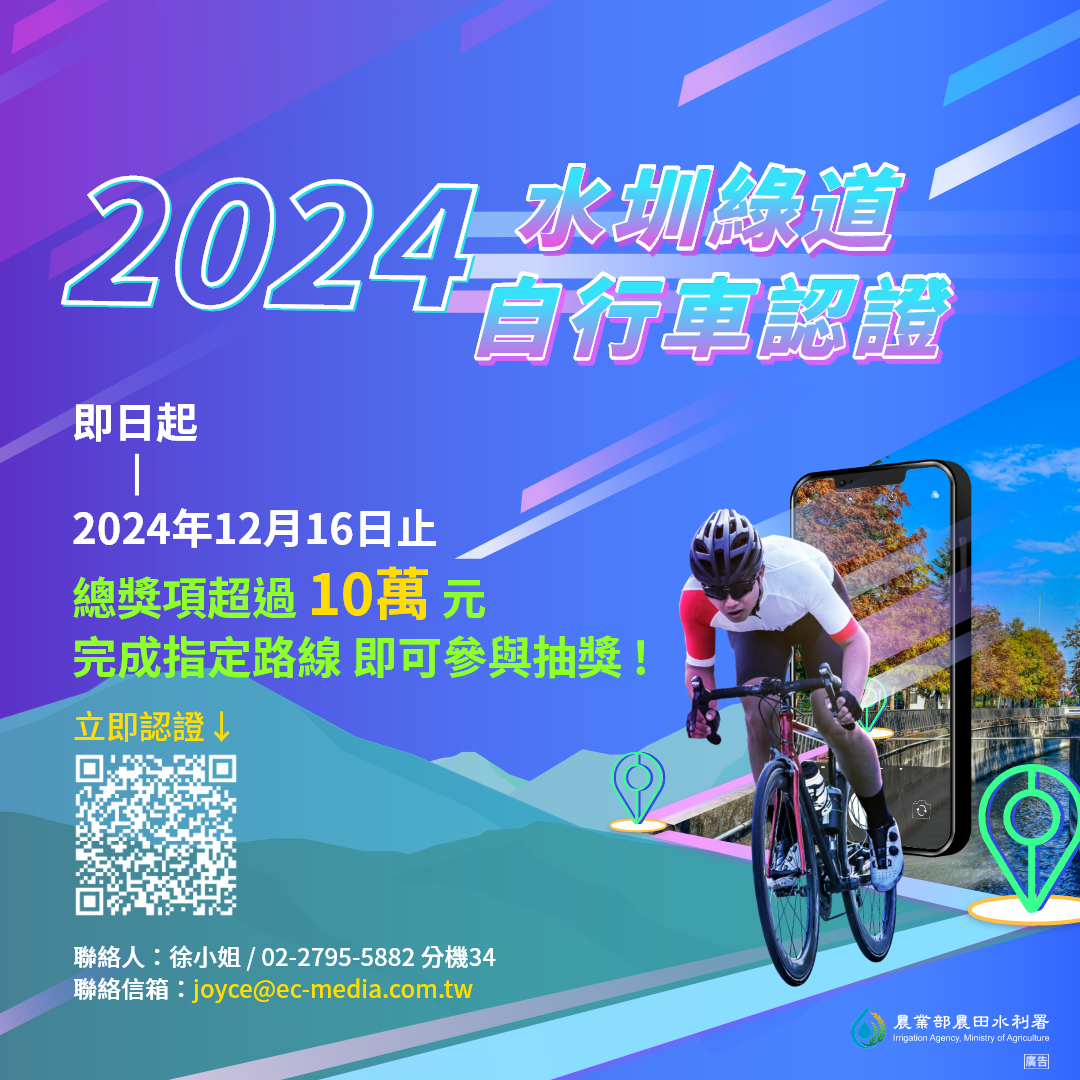 ※ 詳細活動辦法請詳閱2024水圳綠道自行車認證主題網站